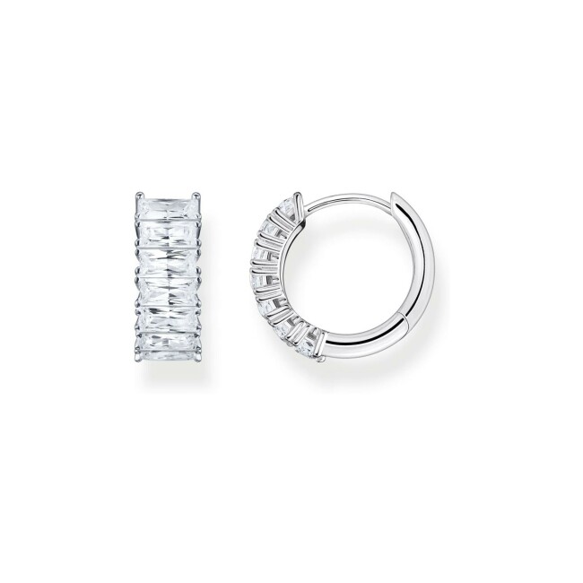 Boucles d'oreilles créoles Thomas Sabo blanches pavées en argent et oxydes de zirconium