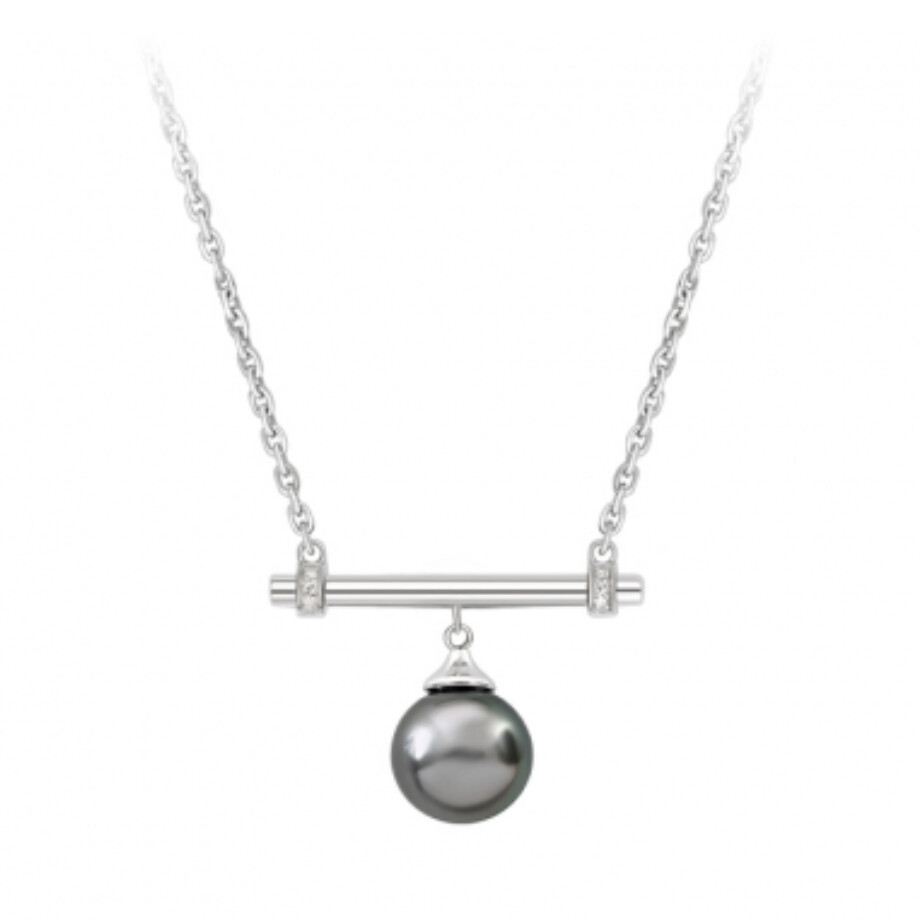 Collier chaîne forçat en argent 925 rhodié, son pendentif design en argent, une perle de Tahiti et 6 diamants de 0,020 ct.